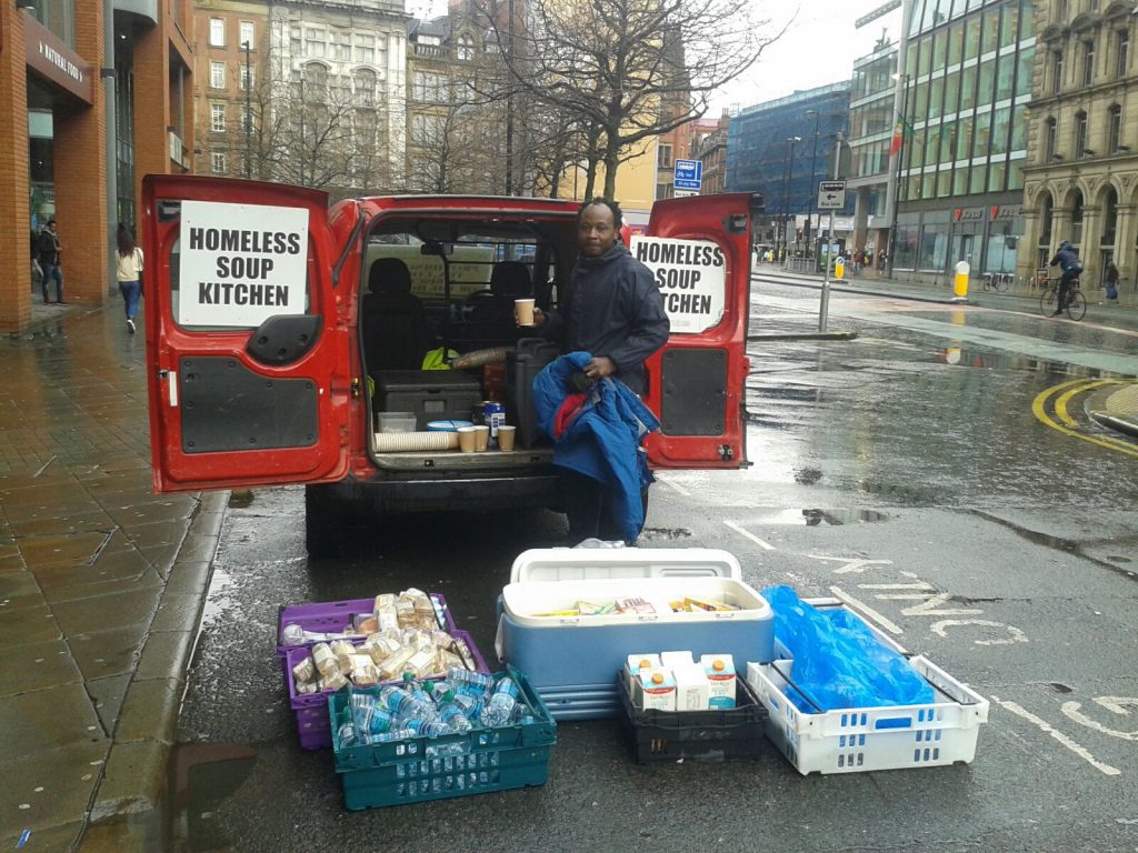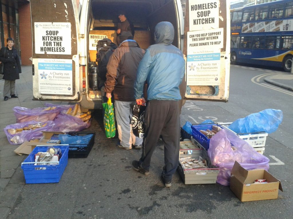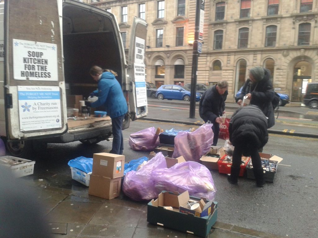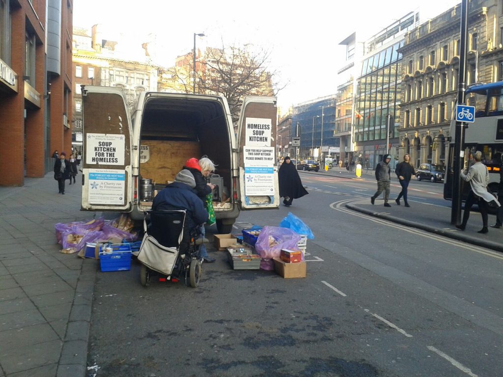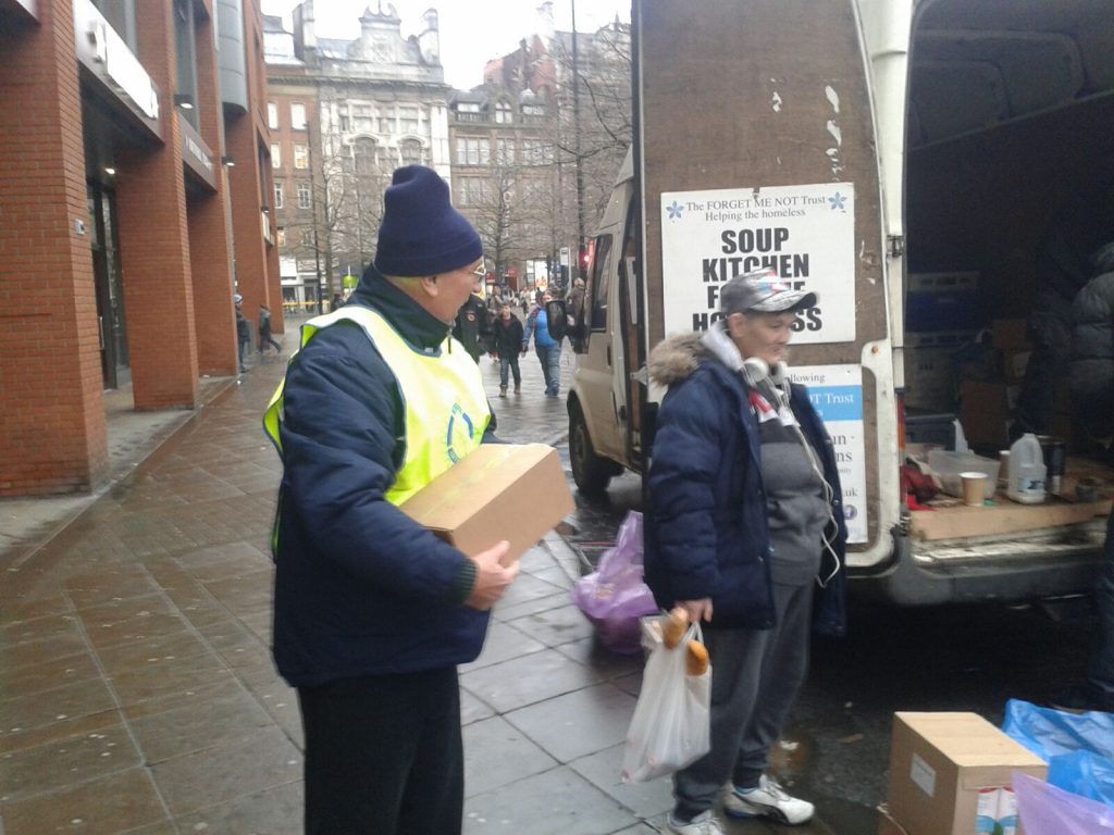 Great to see ken garrity of the Altrincham rotary club and ezra and Nathan mcgowan local freemasons working together for the homeless people around Manchester