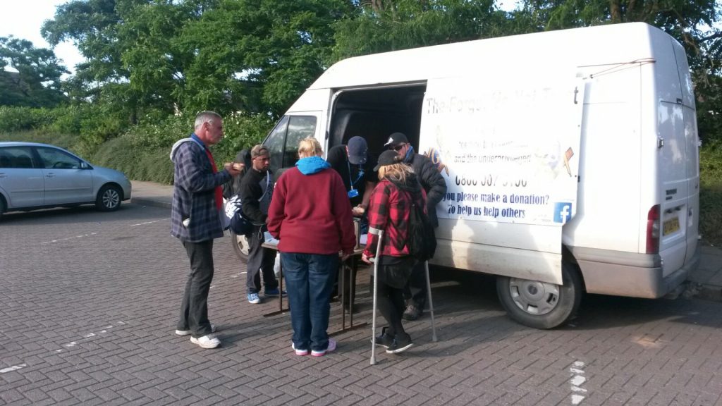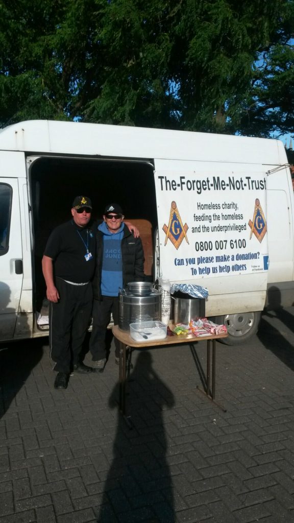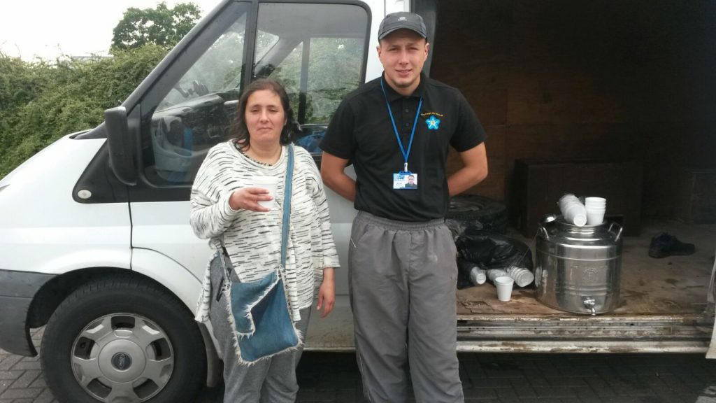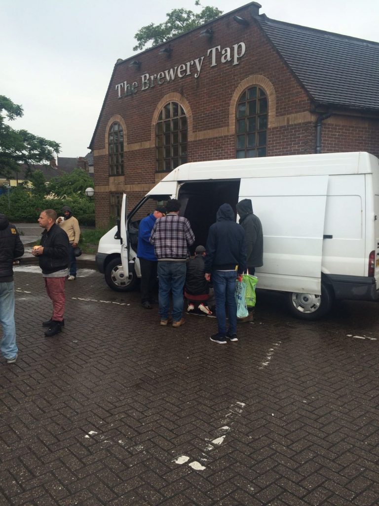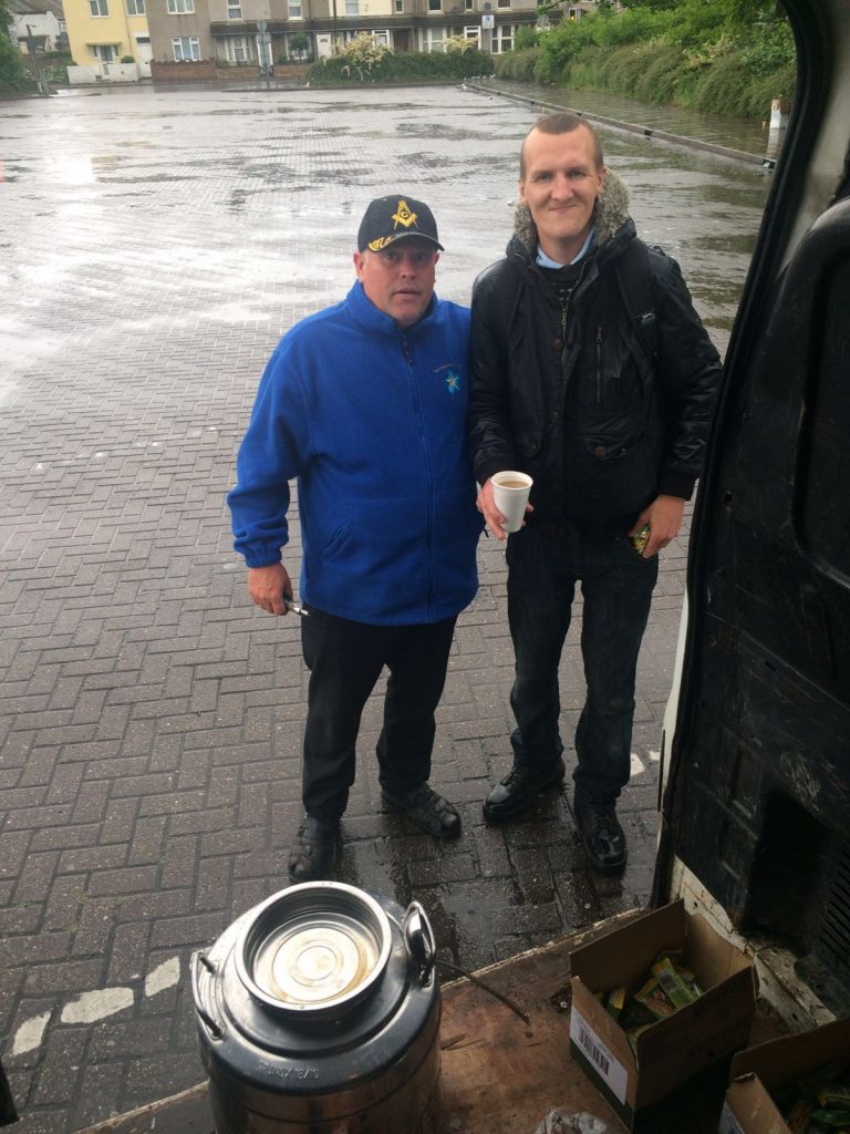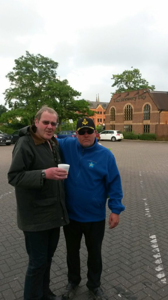 Michael pescod and Michael mcgowan dishing out some drinks and food in the brewery tap car park tonight