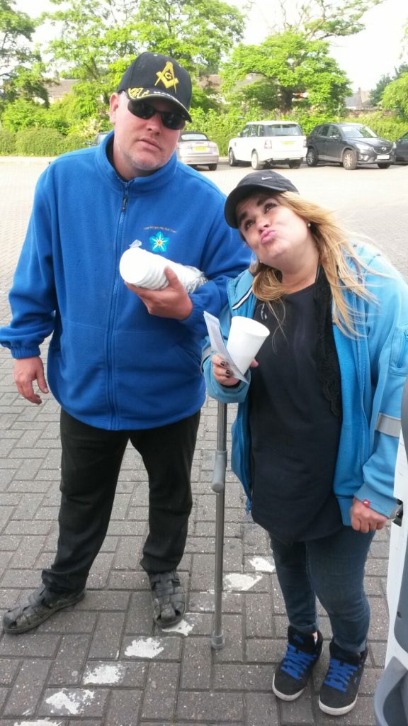 Nathan with one of the regular ladies at the brewery tap car park