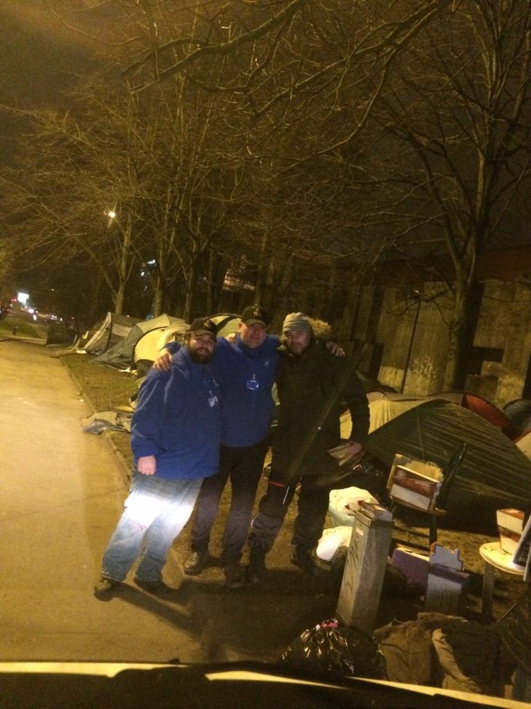 Ezra and Nathan with a very very grateful lad at the tents tonight
