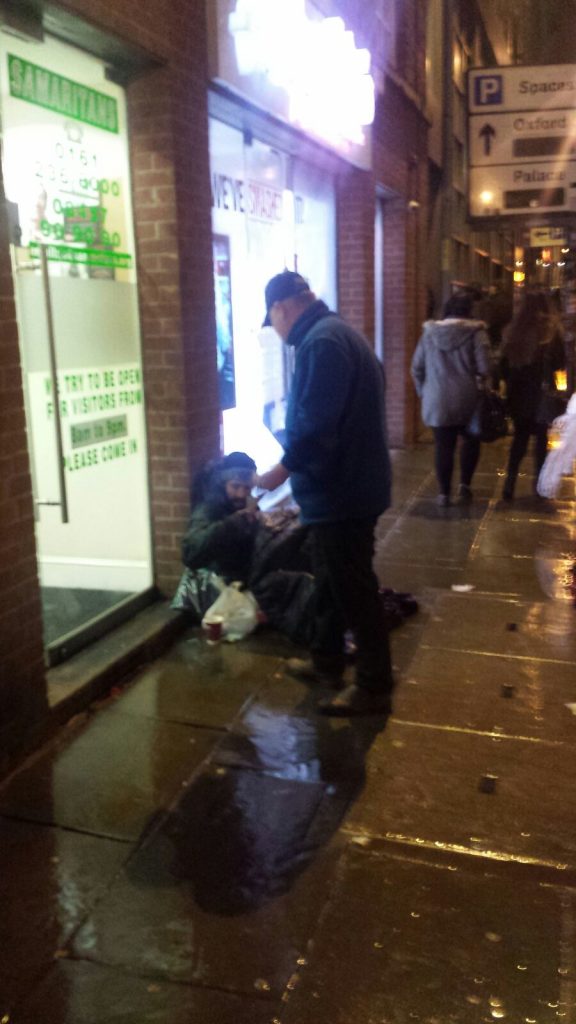 Dropping off crisis bags around the streets of Manchester tonight