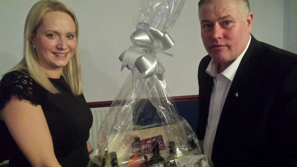 Nathan with kay the lucky winner of the hamper for the forget me not trust to help raise funds for the homeless
